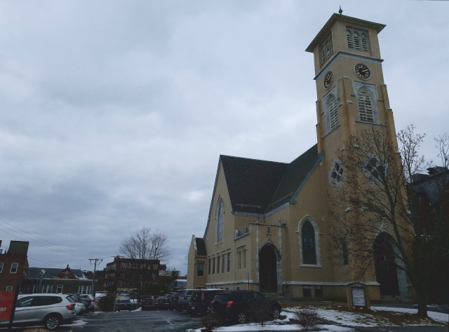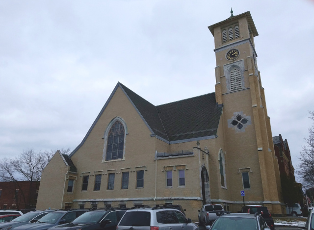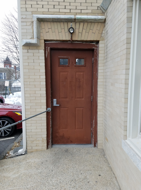 We meet for Sunday Worship in our downstairs Fellowship Hall. The entrance is through the door toward the back of the left side of the building, off of the public parking lot.